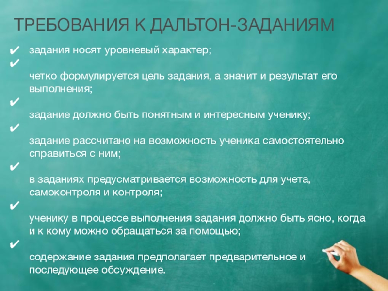 Слайд 10ТРЕБОВАНИЯ К ДАЛЬТОН-ЗАДАНИЯМ
