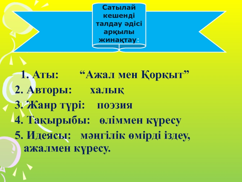 Сатылай кешенді талдау әдісі арқылы жинақтау:
