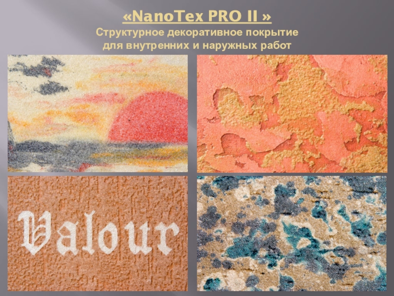 Слайд 3 «NanoTex PRO II » Структурное декоративное покрытие для внутренних и наружных работ