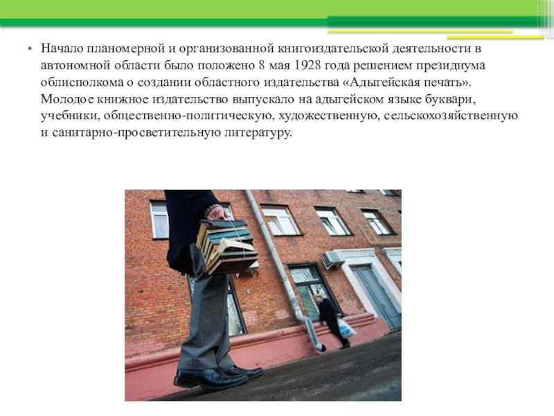 Слайд 10Начало планомерной и организованной книгоиздательской деятельности в автономной области было положено