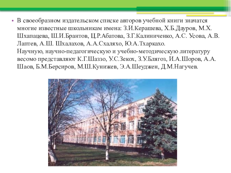 Слайд 12В своеобразном издательском списке авторов учебной книги значатся многие известные школьникам
