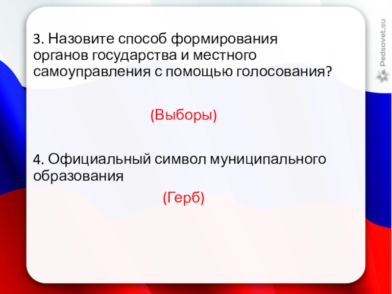 3. Назовите способ формирования органов государства и местного самоуправления с помощью