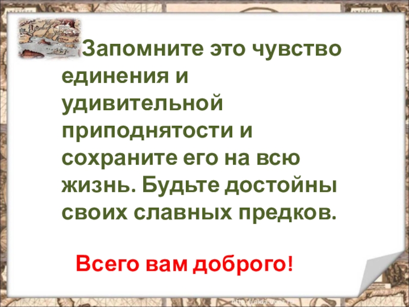 Слайд 28 Запомните это чувство единения и удивительной приподнятости и сохраните его
