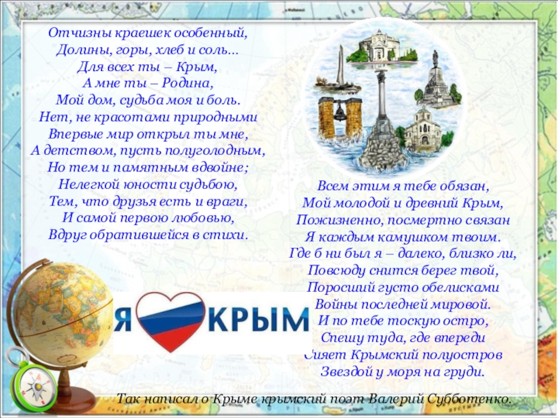Так написал о Крыме крымский поэт Валерий Субботенко.
