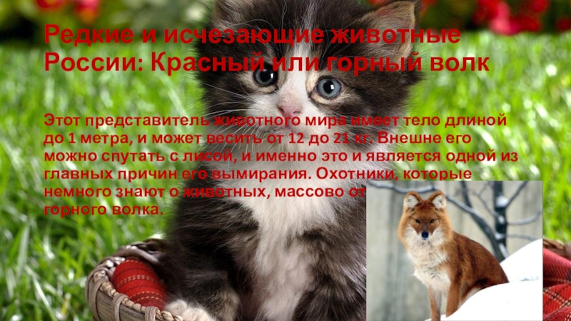 Слайд 4Редкие и исчезающие животные России: Красный или горный волк