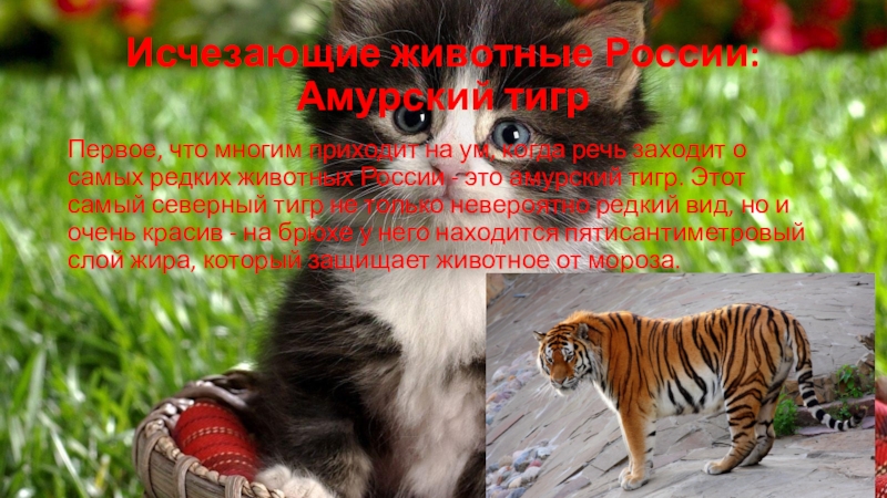 Исчезающие животные России:  Амурский тигрПервое, что многим приходит на ум, когда речь заходит о самых редких
