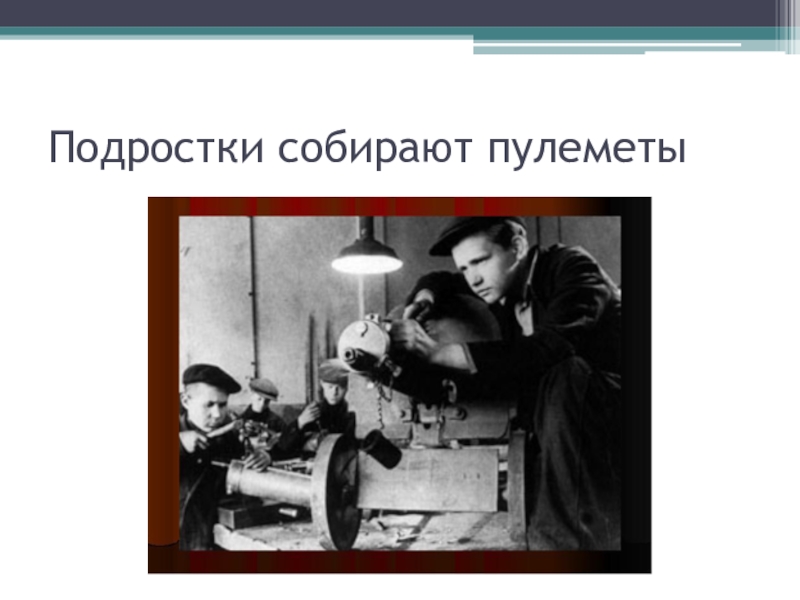 Слайд 10 Весной 1942 года на военные заводы пришли тысячи детей и