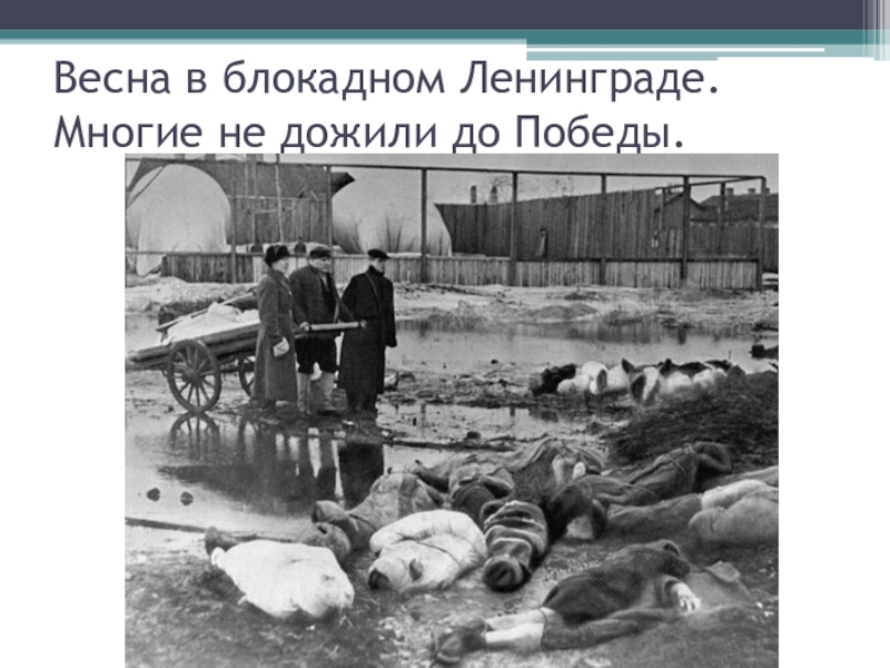 Слайд 14Весна в блокадном Ленинграде. Многие не дожили до Победы.