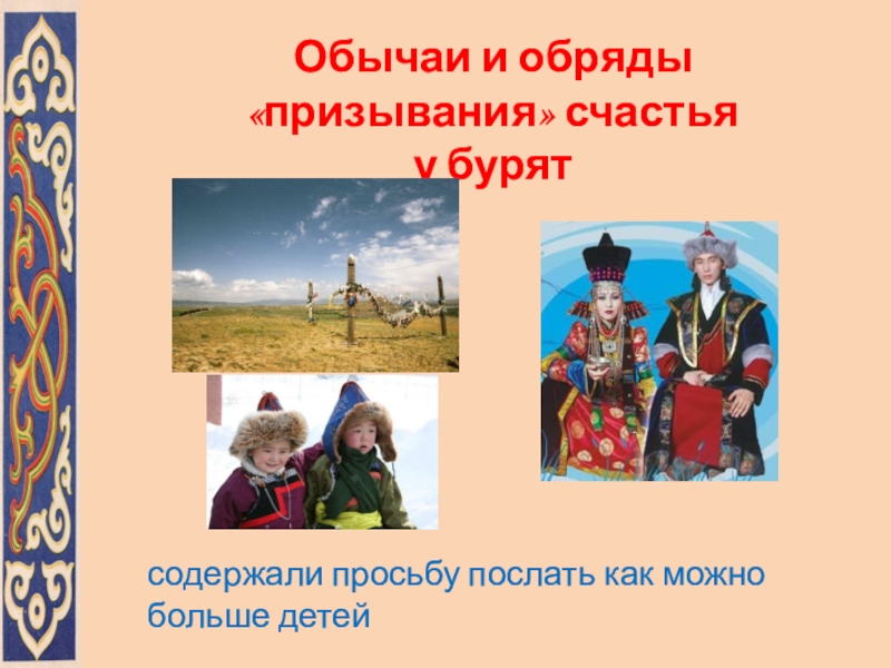 Обычаи и обряды «призывания» счастья у бурятсодержали просьбу послать как можно больше детей
