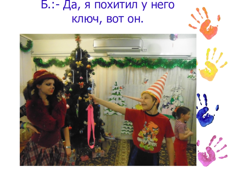 Слайд 5Б.:- Да, я похитил у него ключ, вот он.