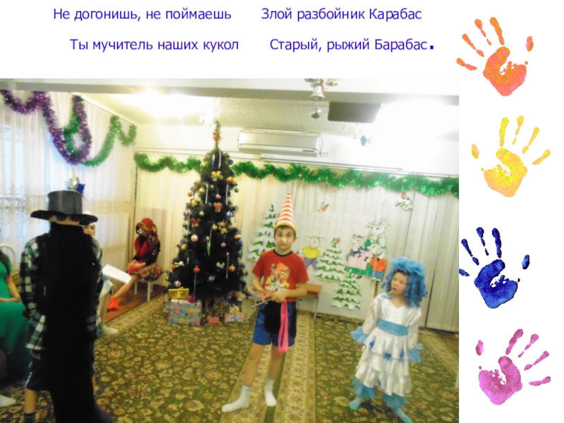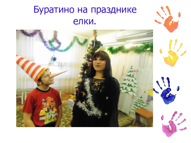 Слайд 2Буратино на празднике елки.