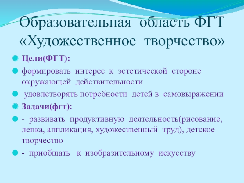 Слайд 5Образовательная область ФГТ «Художественное творчество»