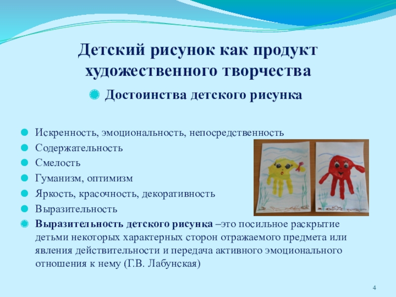 Слайд 4Детский рисунок как продукт художественного творчества