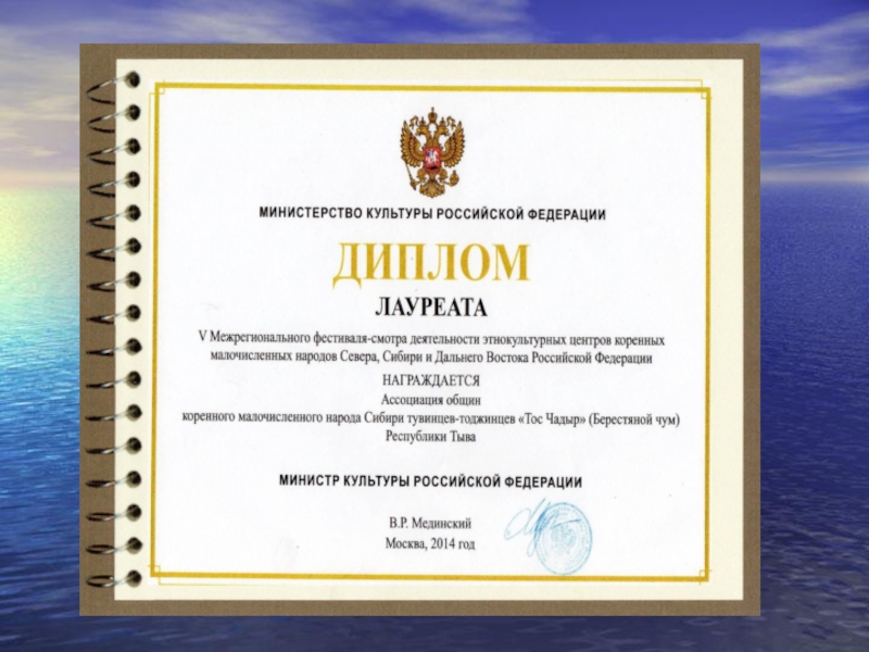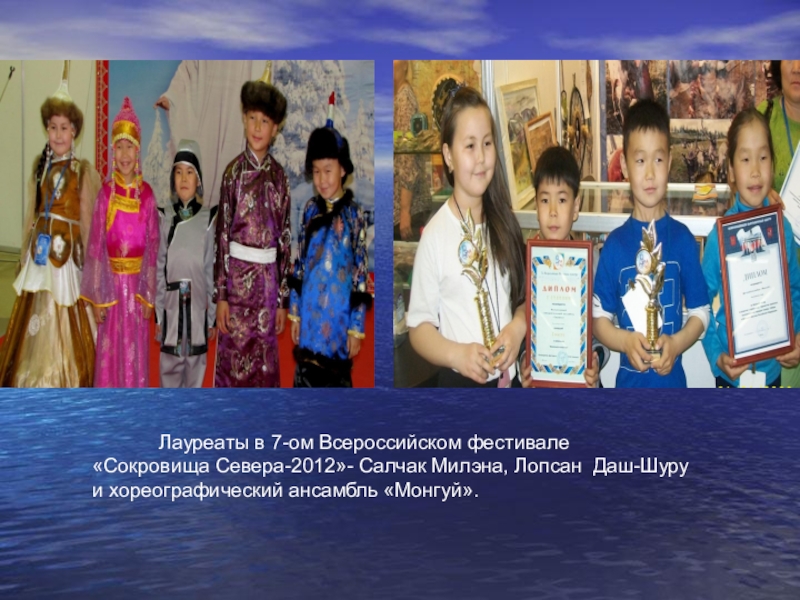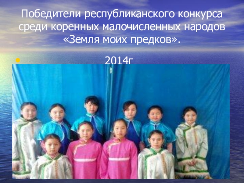 Слайд 6Победители республиканского конкурса среди коренных малочисленных народов «Земля моих предков».