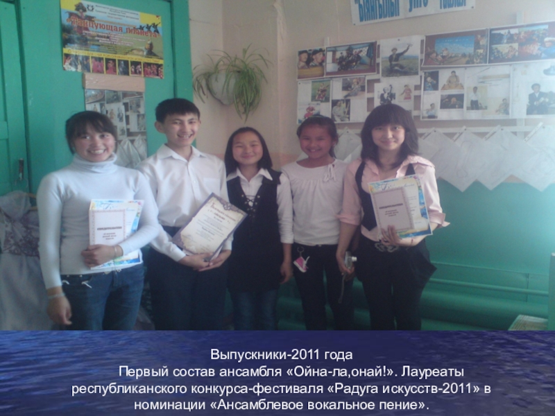 Выпускники-2011 года   Первый состав ансамбля «Ойна-ла,онай!». Лауреаты   республиканского конкурса-фестиваля «Радуга искусств-2011» в номинации