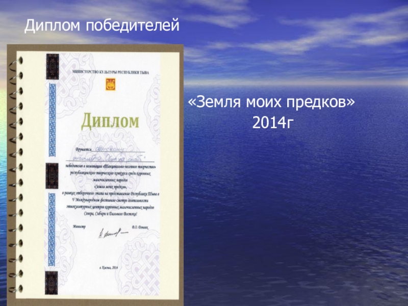 Диплом победителей «Земля моих предков» 2014г