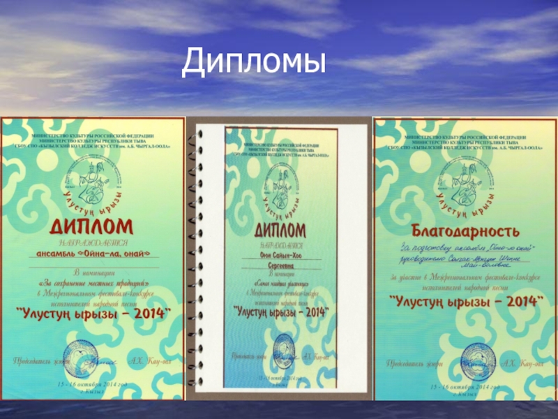 В номинации «за сохранение местных традиций» в Межрегионального фестиваля-конкурса народной песни «Улустун ырызы-2014»;