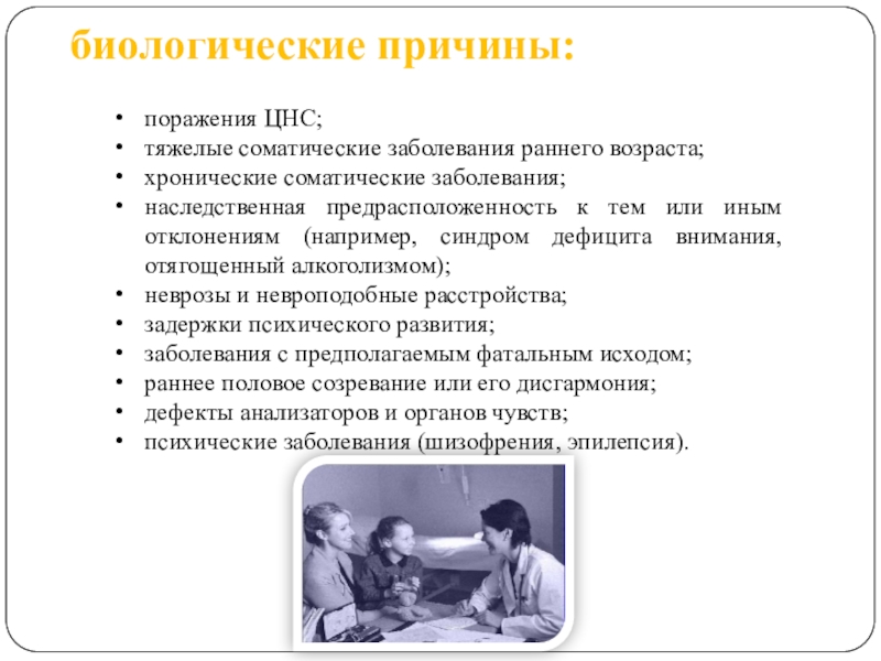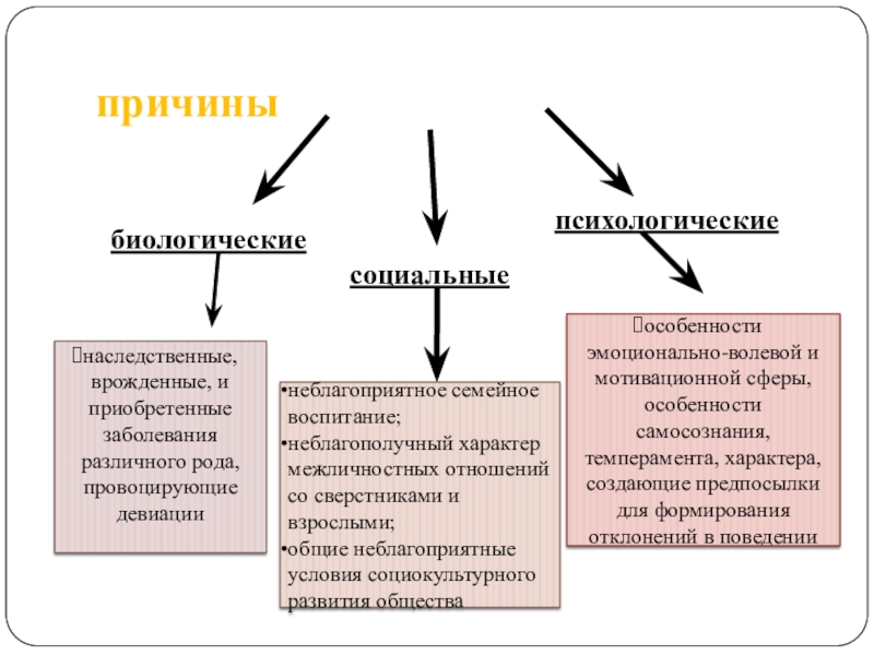 особенности эмоционально-волевой и мотивационной сферы, особенности самосознания, темперамента, характера, создающие предпосылки для формирования отклонений в поведении