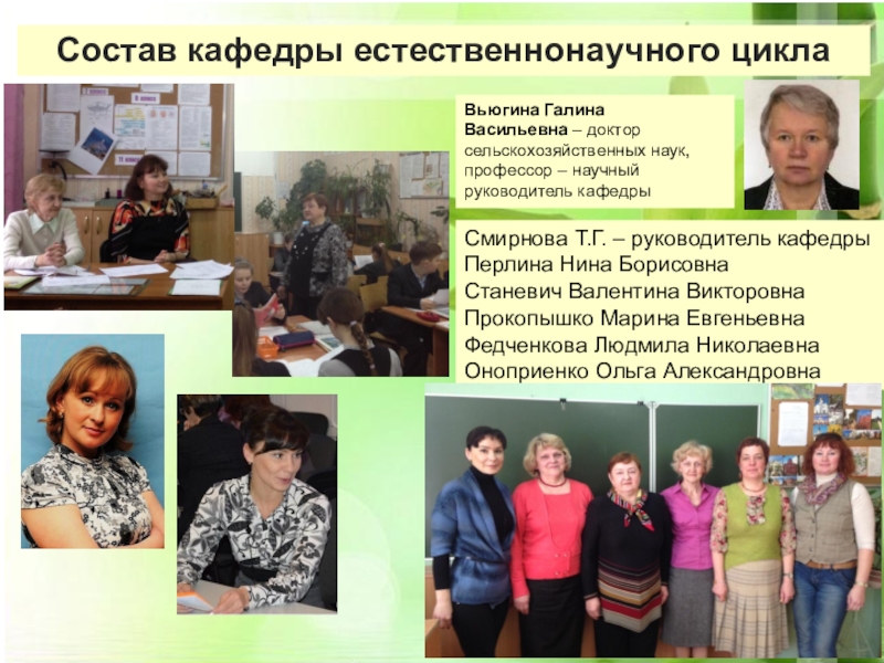 Вьюгина Галина Васильевна – доктор сельскохозяйственных наук, профессор – научный руководитель кафедры