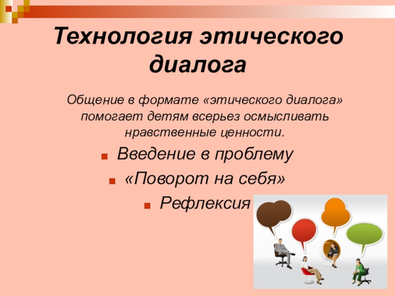 Технология этического диалога  Общение в формате «этического диалога» помогает детям всерьез осмысливать нравственные ценности.Введение в проблему«Поворот
