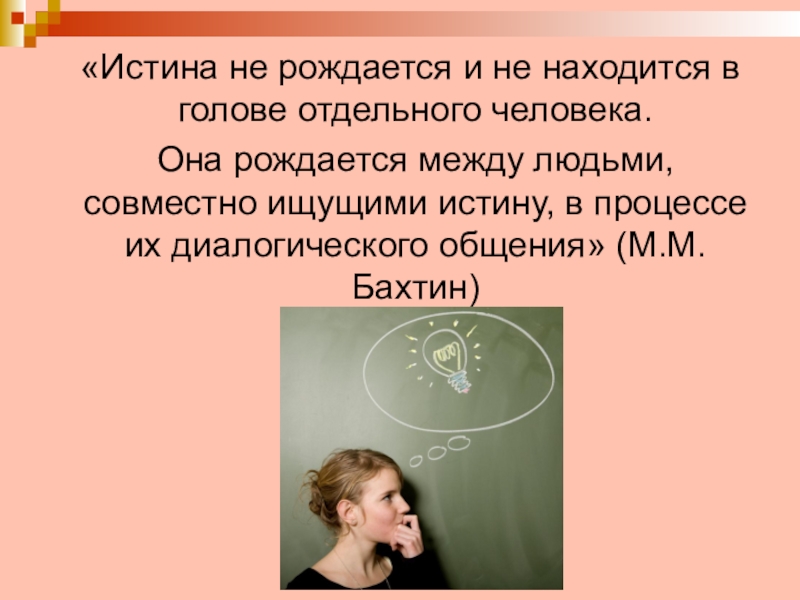 Она рождается между людьми, совместно ищущими истину, в процессе их диалогического общения» (М.М.Бахтин)