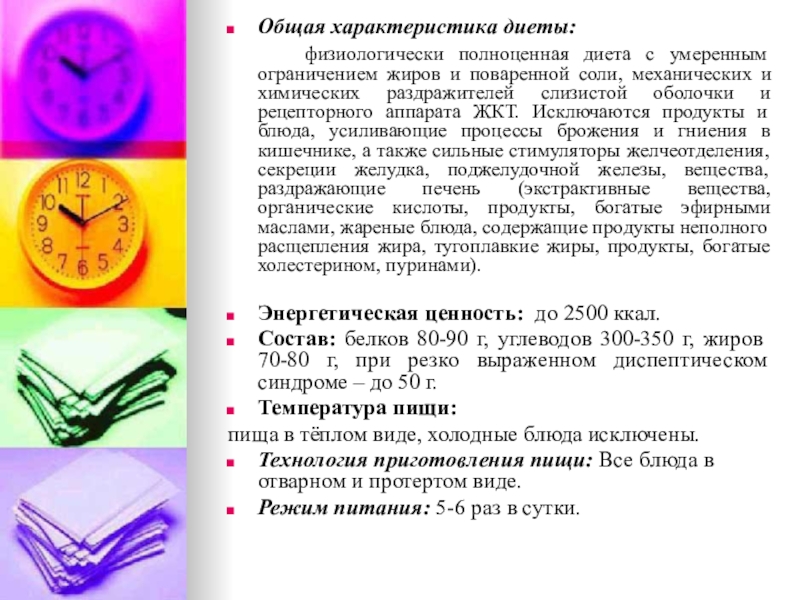 Слайд 9Общая характеристика диеты: