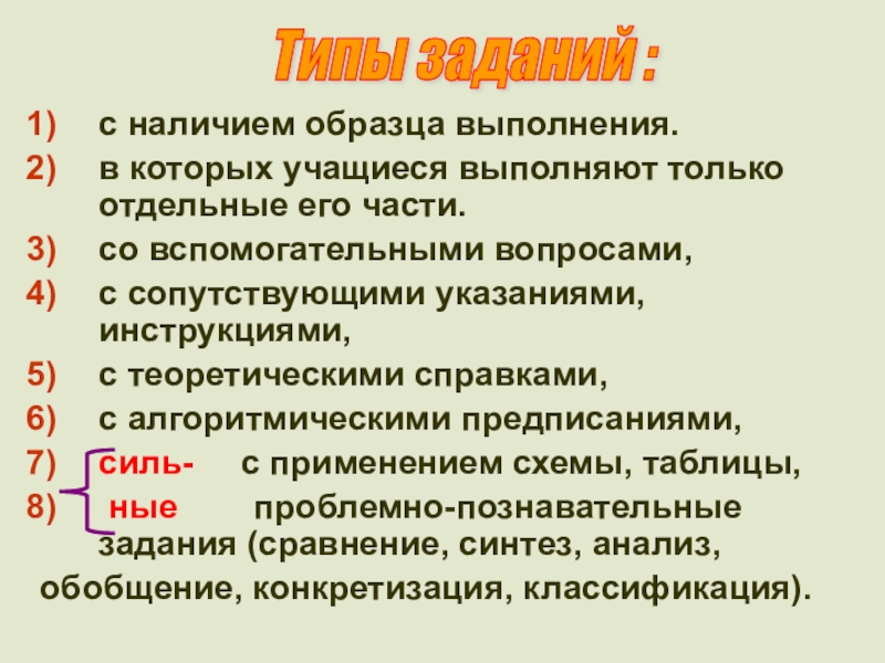 Типы заданий :