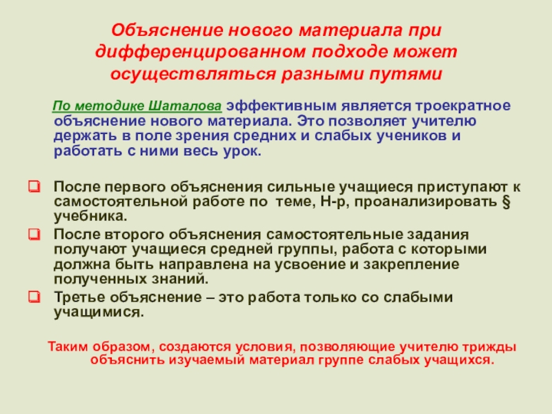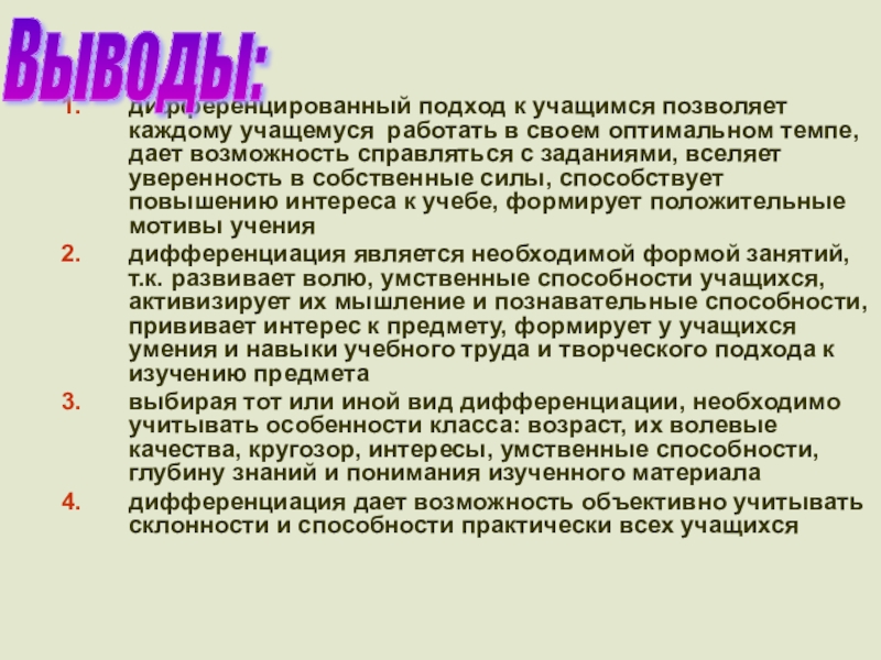 которые обеспечивали бы наиболее эффективный характер деятельности каждого учащегося):