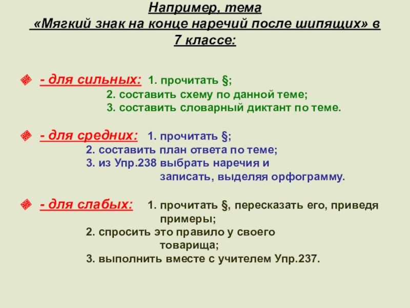 - для слабых: 1. прочитать §, пересказать его, приведя