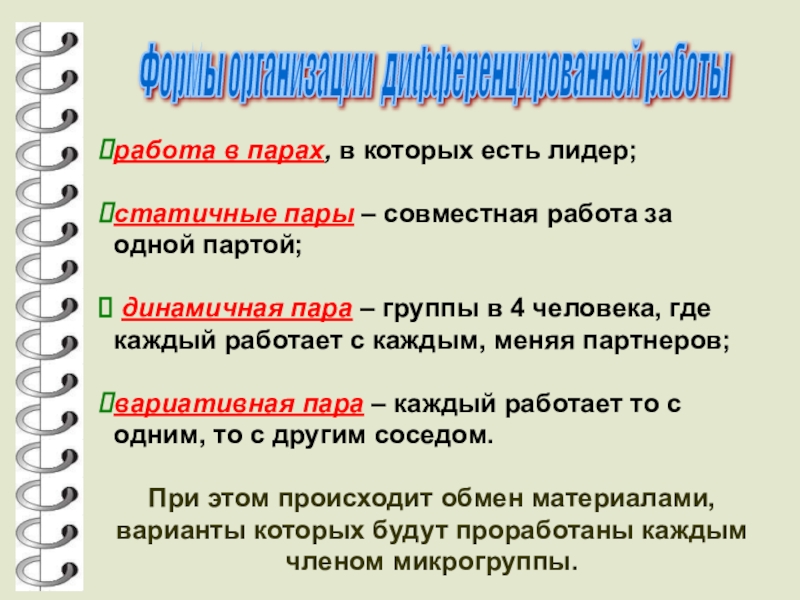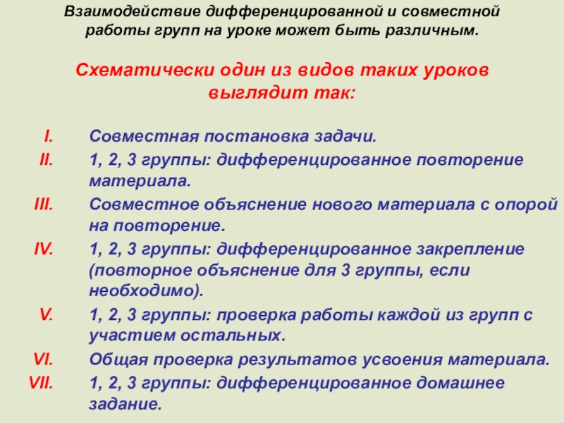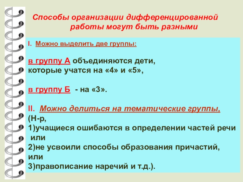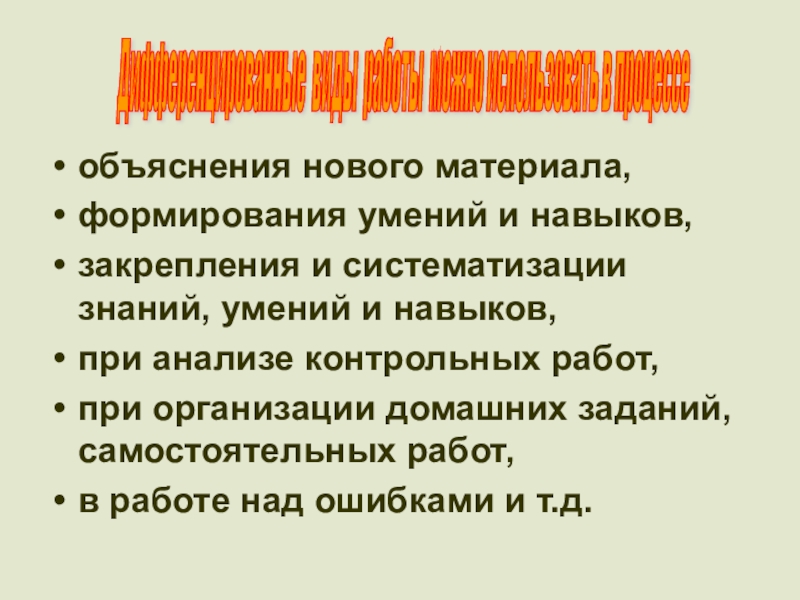 Дифференцированные виды работы можно использовать в процессе