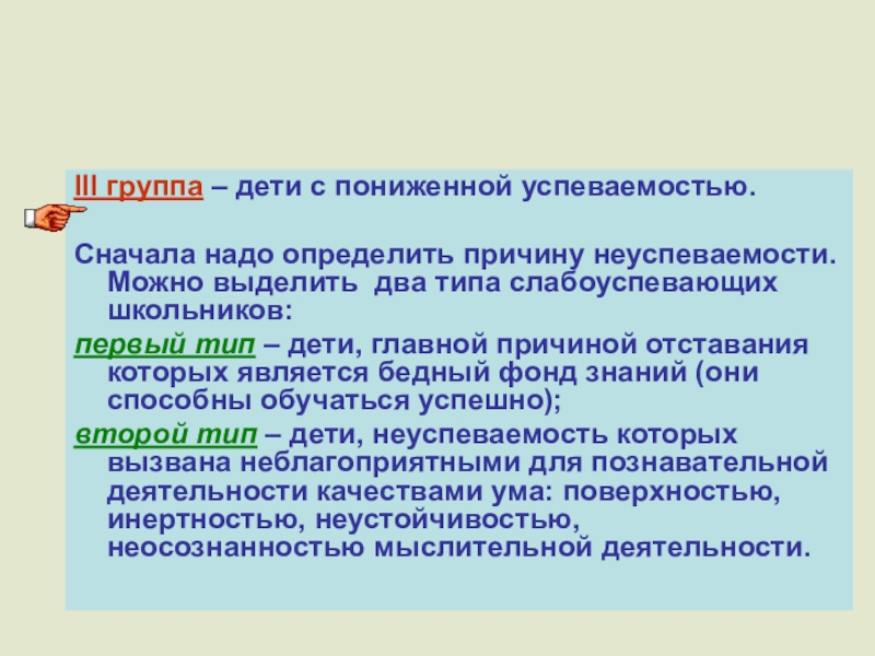 - анализ причин их неуспеваемости;