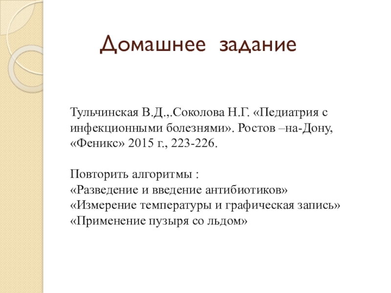 Тульчинская В.Д.,.Соколова Н.Г. «Педиатрия с инфекционными