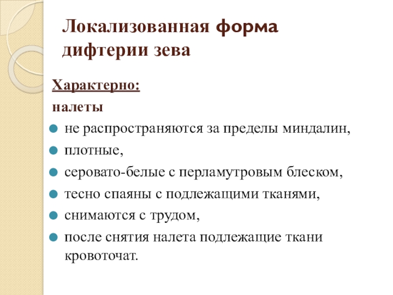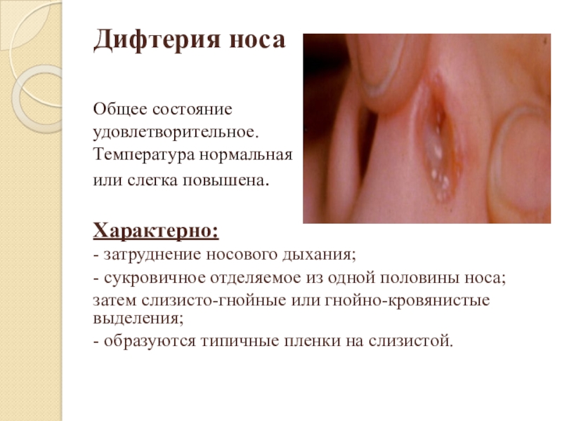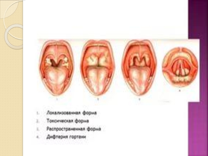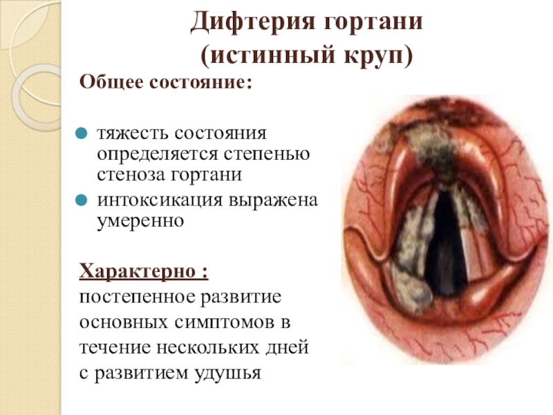 запахом пленка образуется на слизистой оболочке зева, миндалин, гортано-глотки, носа, может спускаться вниз по трахее и вызывать сужение верхних дыхательных путей, истинный дифтеритический круп, опасный развитием асфиксии, удушья
