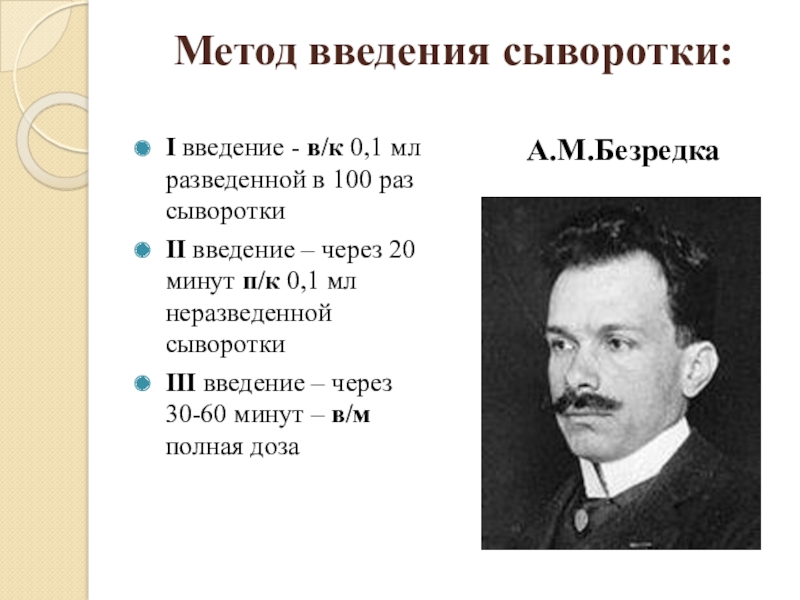 II введение – через 20 минут п/к 0,1 мл неразведенной сыворотки