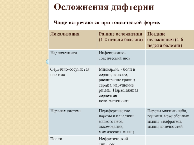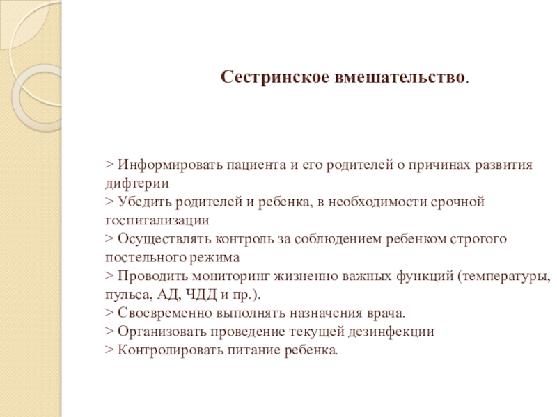 > Информировать пациента и его родителей о причинах развития дифтерии