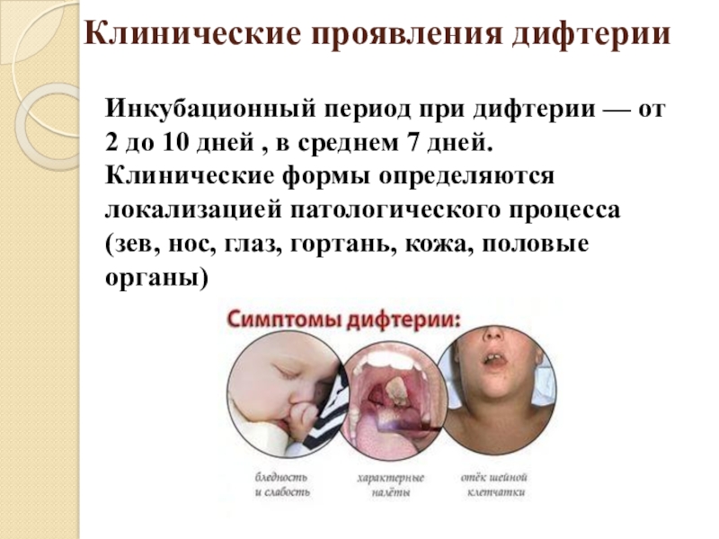 Клинические формы определяются локализацией патологического процесса (зев, нос, глаз, гортань, кожа, половые органы)
