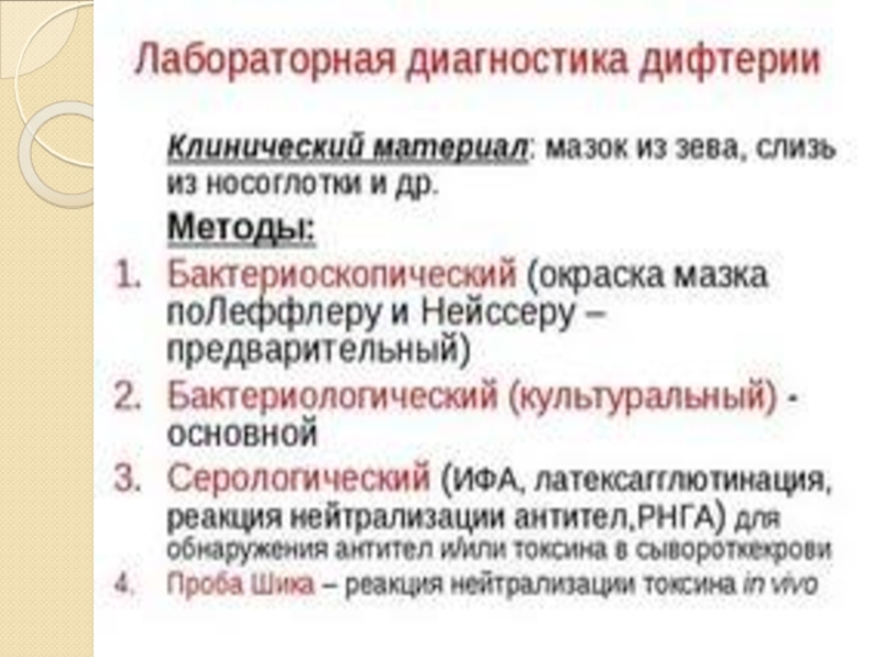 4. Санация бактерионосителей токсигенных коринебактерии.