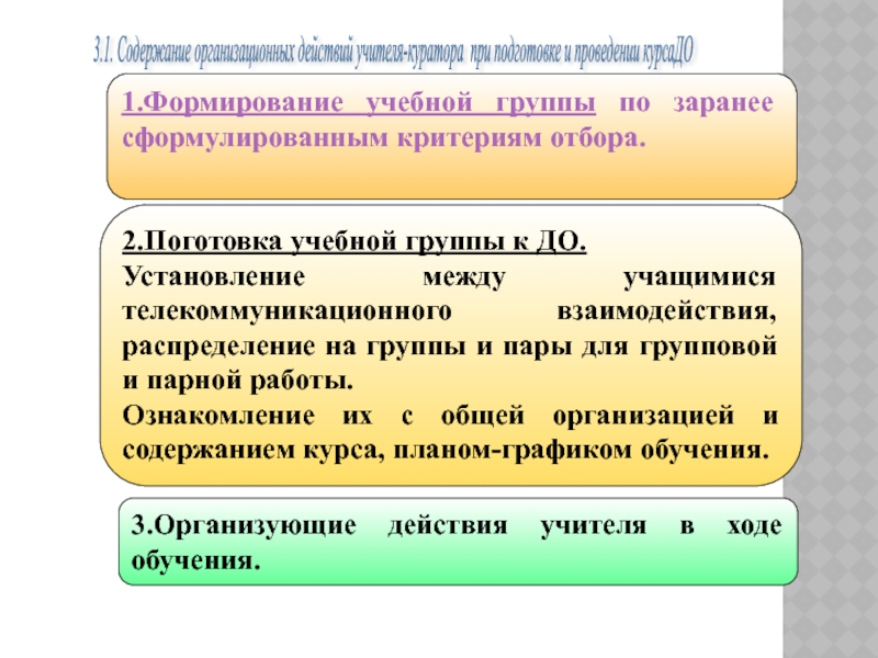 3.1. Содержание организационных действий учителя-куратора при подготовке и проведении курсаДО