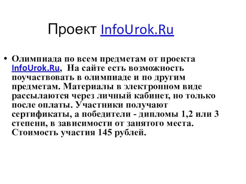 Олимпиада по всем предметам от проекта InfoUrok.Ru, На сайте есть