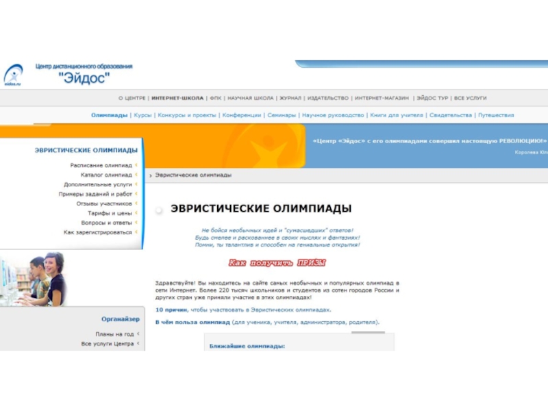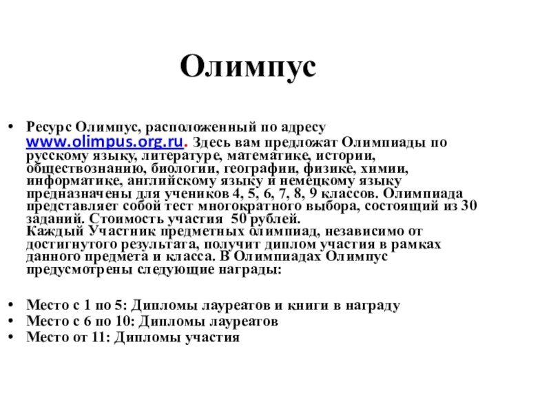 Ресурс Олимпус, расположенный по адресу www.olimpus.org.ru. Здесь вам предложат Олимпиады по
