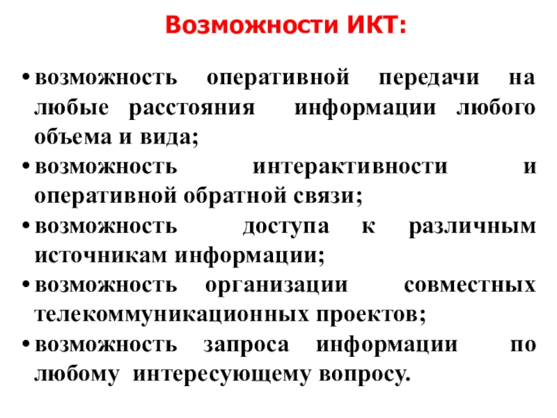 Слайд 2Возможности ИКТ: