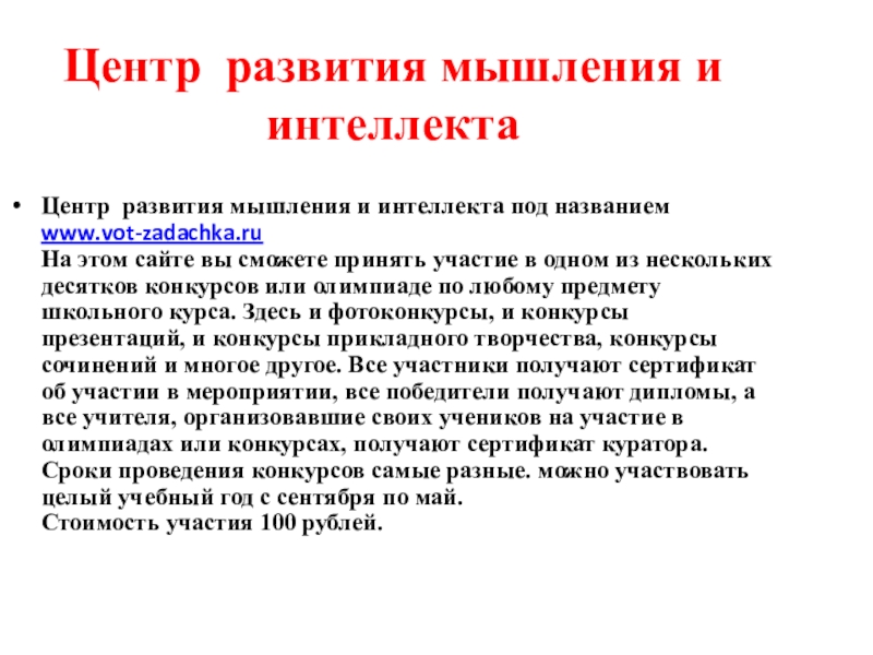 Слайд 7Центр развития мышления и интеллекта