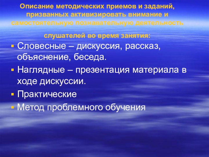Слайд 24Описание методических приемов и заданий, призванных активизировать внимание и самостоятельную познавательную