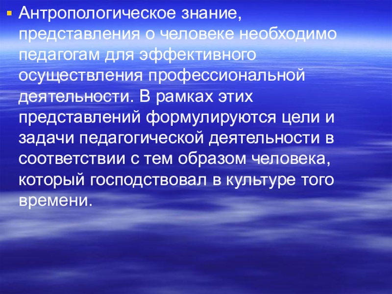 Слайд 22Антропологическое знание, представления о человеке необходимо педагогам для эффективного осуществления профессиональной