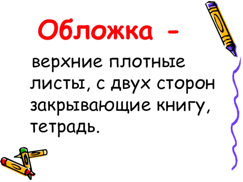 Обложка - верхние плотные листы, с двух сторон закрывающие книгу, тетрадь.