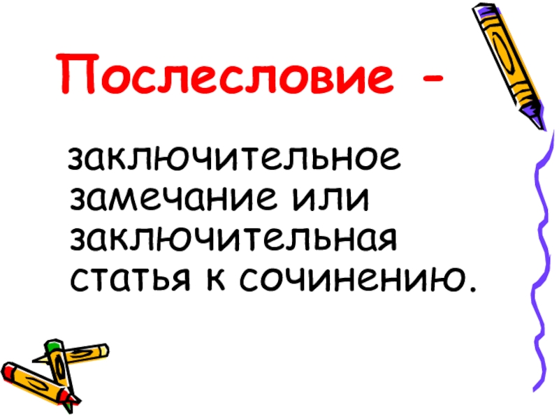 Послесловие -  заключительное замечание или заключительная статья к сочинению.