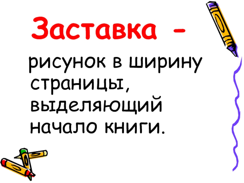 Заставка -  рисунок в ширину страницы, выделяющий начало книги.
