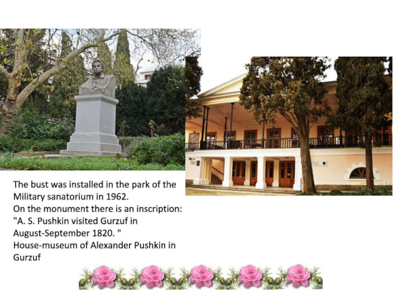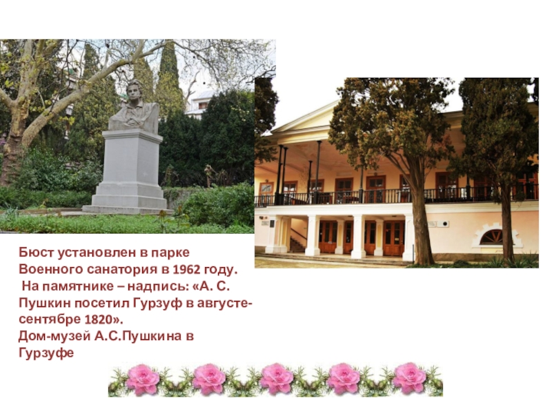 – надпись: «А. С. Пушкин посетил Гурзуф в августе-сентябре 1820».