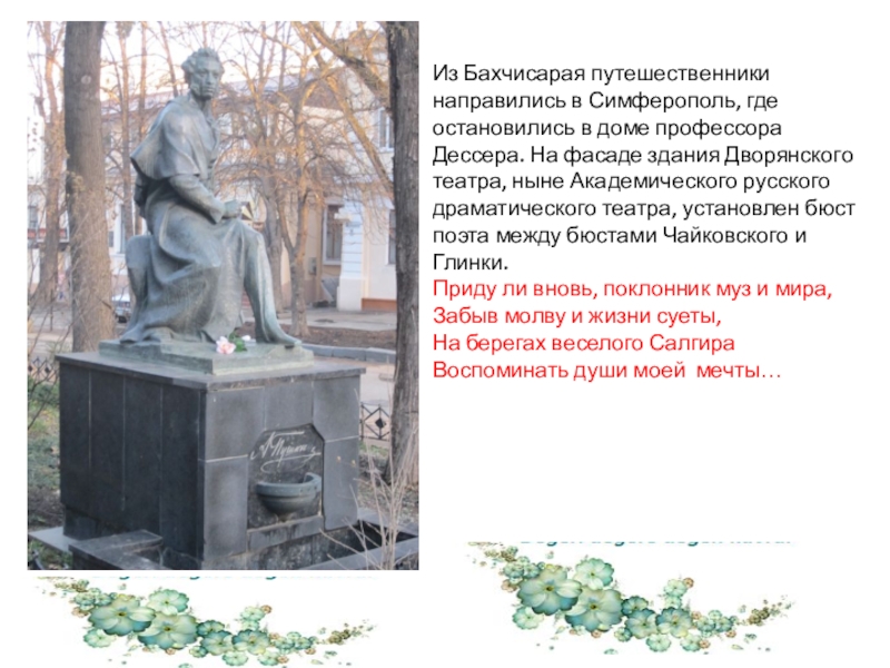 Слайд 27Из Бахчисарая путешественники направились в Симферополь, где остановились в доме профессора