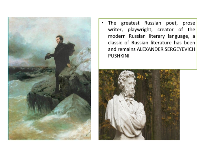 Слайд 3The greatest Russian poet, prose writer, playwright, creator of the modern